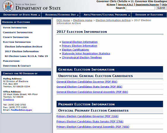 Additional New Jersey Federal and State Government information: